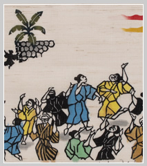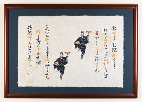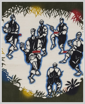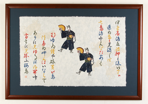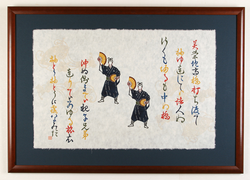 Nubui Kuduchi is the most popular Ryukyuan dance for males. This piece depicts the dancers and the song’s lyrics.