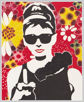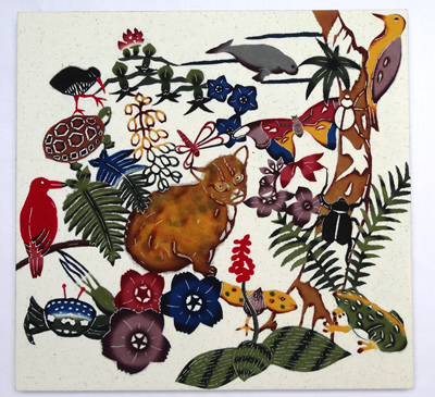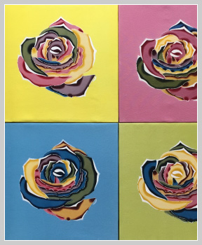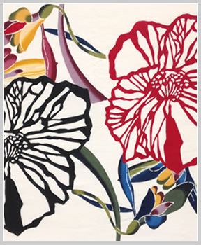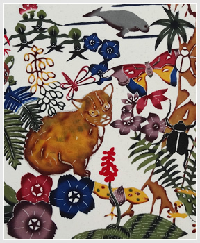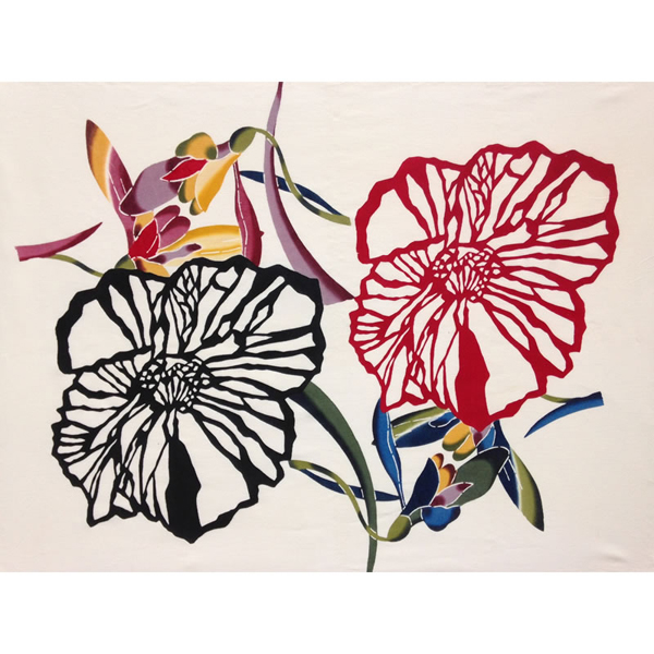 This is a work where I placed cutout-like flowers over each of the four flowers and arranged Okinawan Classic Bingata on the background.