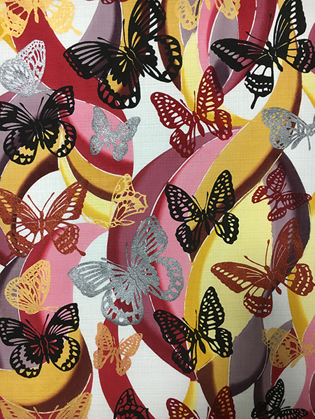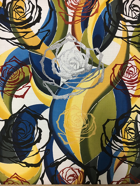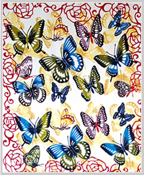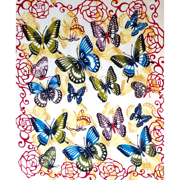 This is a work where I placed butterflies over the red roses three times and finished dyeing them.