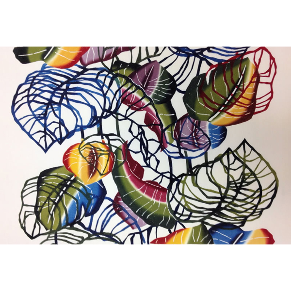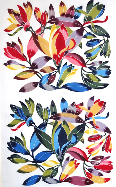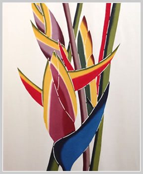 This is a work where I finished dyeing Red heliconias characteristic of the southern countries with cool colors.