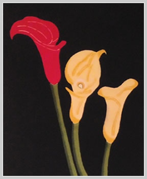 This is a work where I put calla lilies like three sisters on a black background and expressed attractiveness in it.