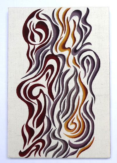 There are sacred places in Okinawa called utaki, where people worship the spirits of the ancestors protecting the village. Utaki are important to the local people as spiritual centers. Every month, priestesses called Kaminchu perform various rituals. When I visited the remains of an old castle that was built before the Ryukyu Kingdom was united, I saw women performing a ritual uutootu at the utaki there. This piece was created from that memory.