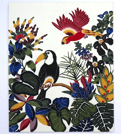 This is a work where I finished dyeing Red heliconias characteristic of the southern countries with warm colors.