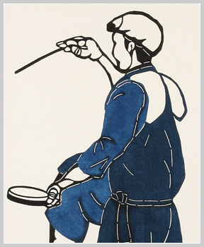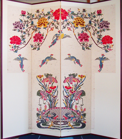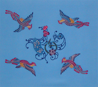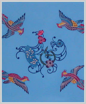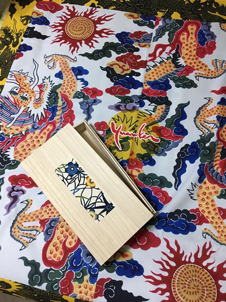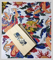 Furoshiki is a large square of cloth for wrapping and carrying a bundle. Classical pattern of long-tailed roosters is arranged.