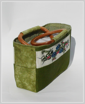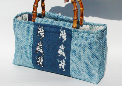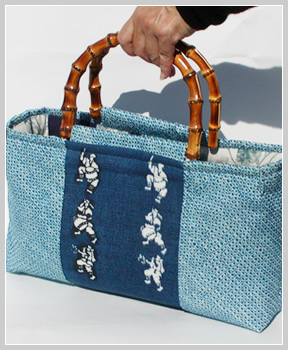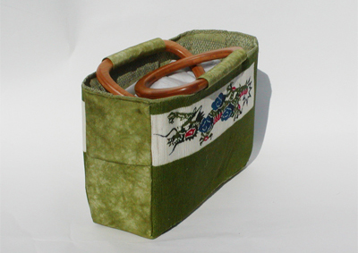 This bag was made with dyed small fabric pieces.